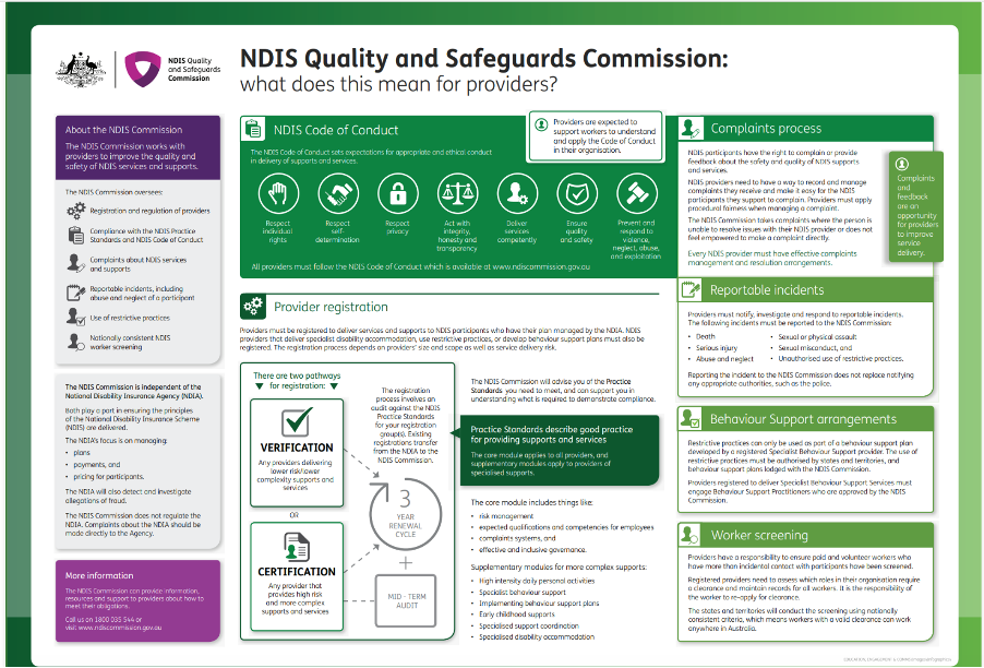 Source: NDIS Quality & Safeguards Commission Infographic PDF - https://www.ndiscommission.gov.au/sites/default/files/2022-07/ndis-commission-what-does-mean-providers-v3_0.pdf